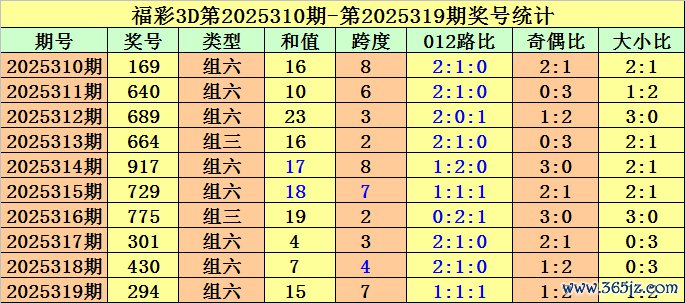 320期金原福彩3D预测奖号:大小奇偶012路分析
